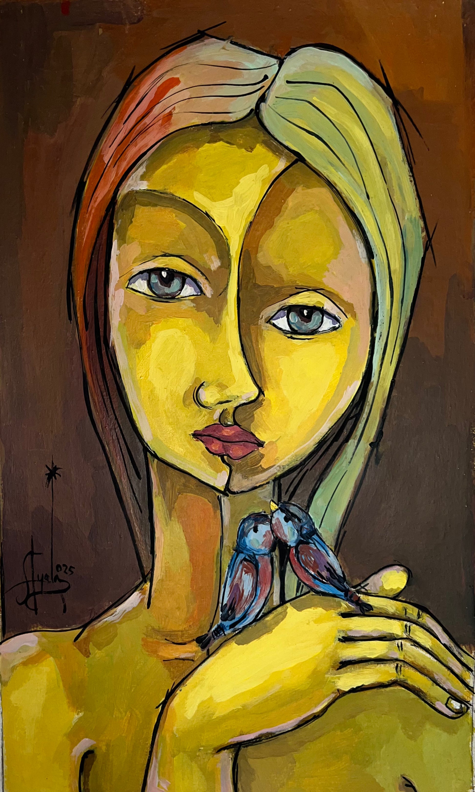 "Serenity" radiates warmth and a profound sense of peace. This luminous artwork, featuring a figure tenderly holding two birds, embodies gentle compassion and the quiet strength of connection. A truly uplifting piece, it promises to infuse your space with a calming glow and a timeless message of harmony.