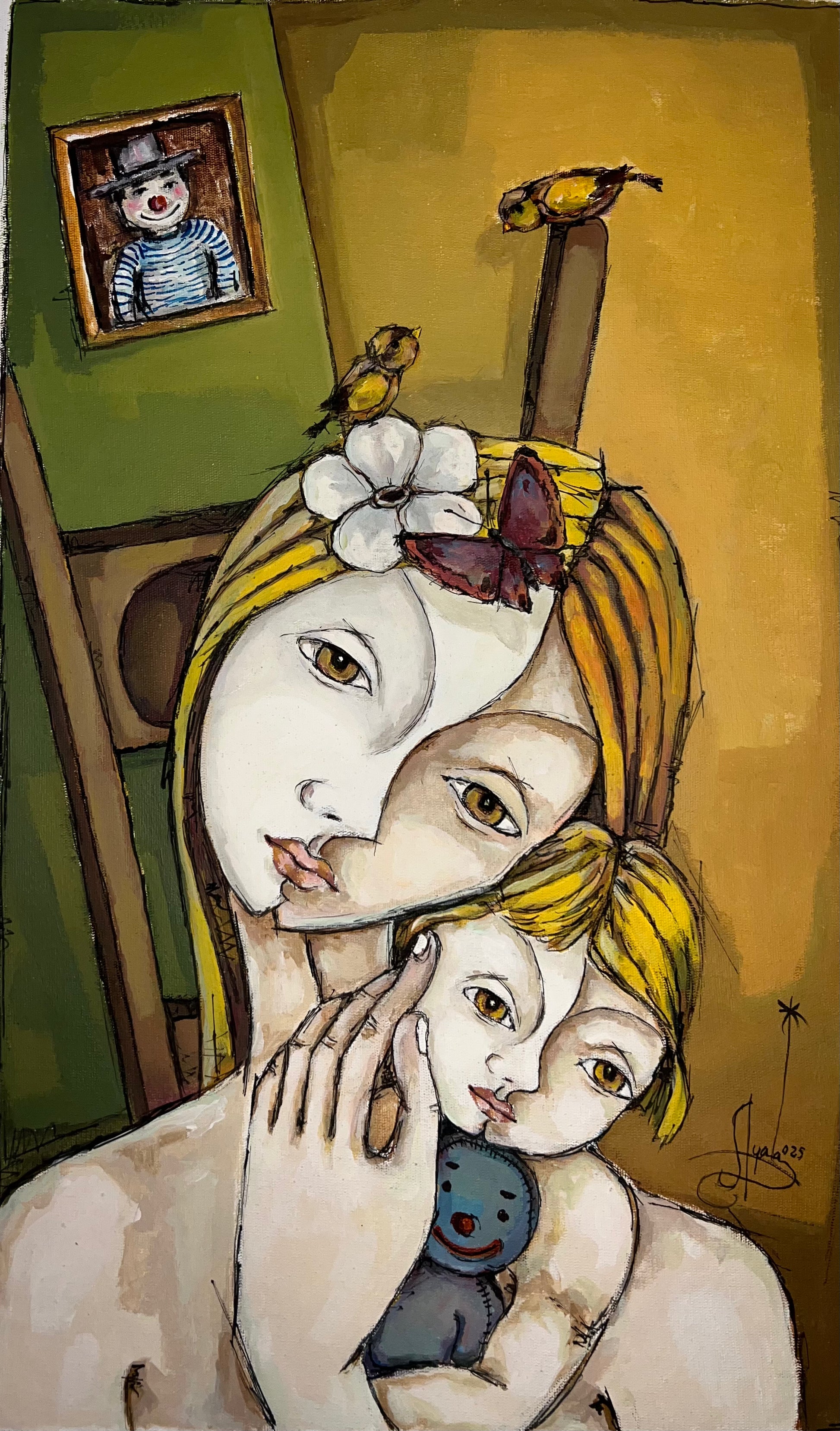 "Whispers of Legacy" is a poignant portrayal of family bonds, where a mother embraces her child, surrounded by cherished memories and the echoes of generations. This deeply touching artwork celebrates the enduring love that shapes us. A profound piece that will resonate with heartfelt emotion.